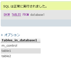 SHOW TABLES FROM <データベース名>