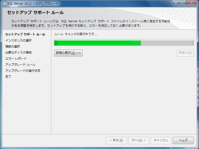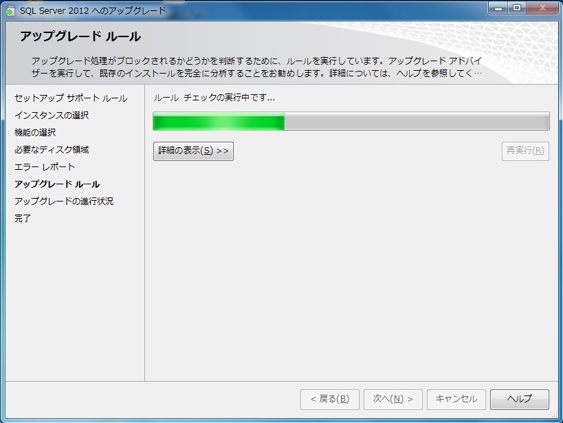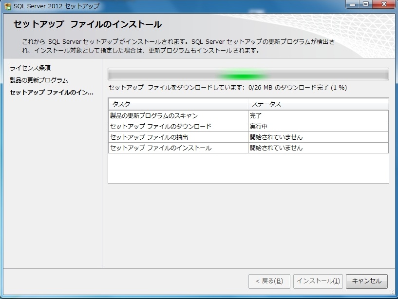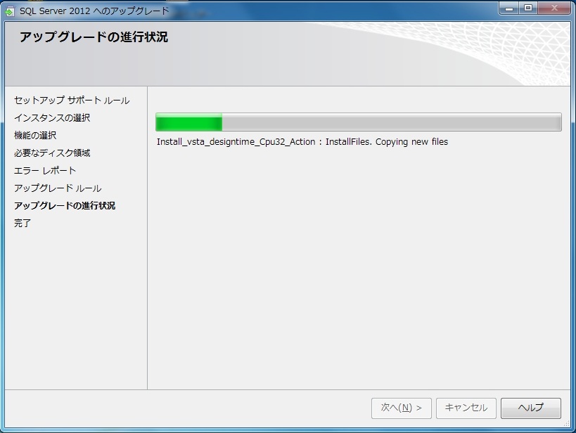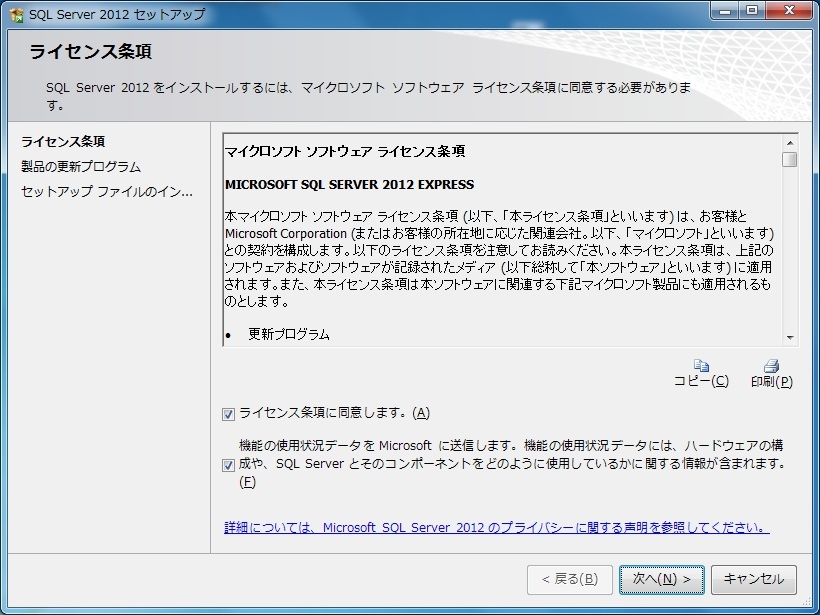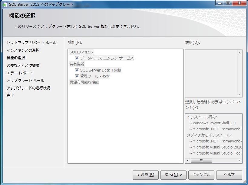 SQL Server 2008 Express Edition がインストールされた環境に SQL Server 2012 Express Edition をアップグレードインストールする手順。