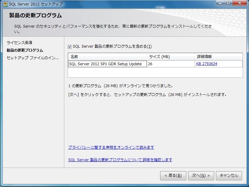 可能であればSQL Server インストール前に Windows Update(Microsoft Update)を最新にしておきます。