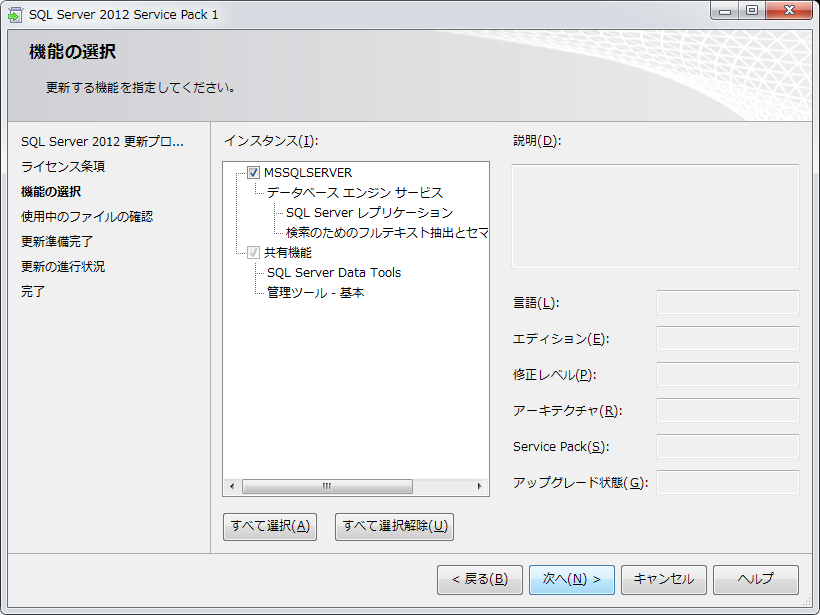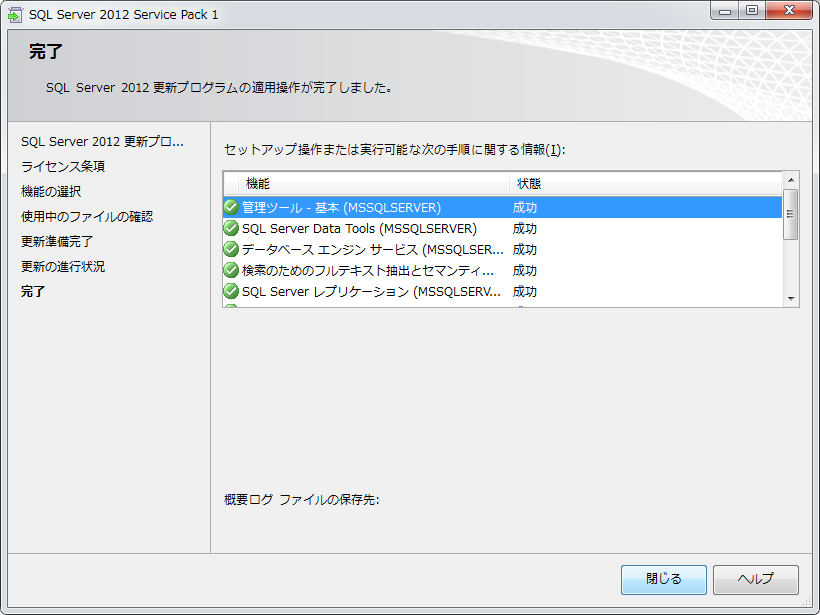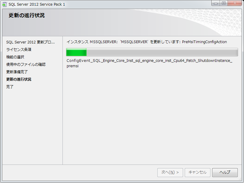 SQL Server 2012 に Serice Pack 1 をインストールする手順