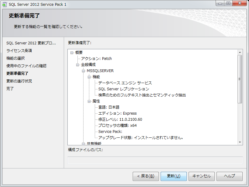 SQL Server 2012 Express Edition に Service Pack 1 をインストールします。