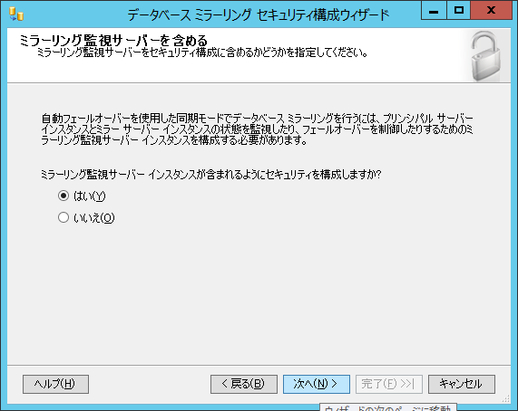 クリックで拡大 - 「データベース ミラーリング セキュリティ構成ウィザード」が起動します。