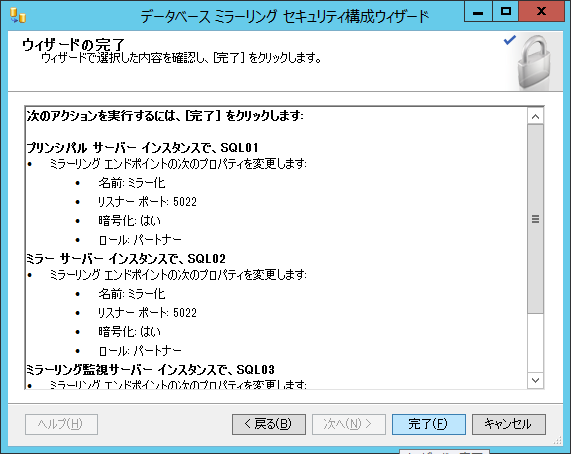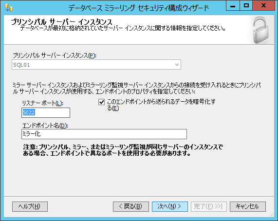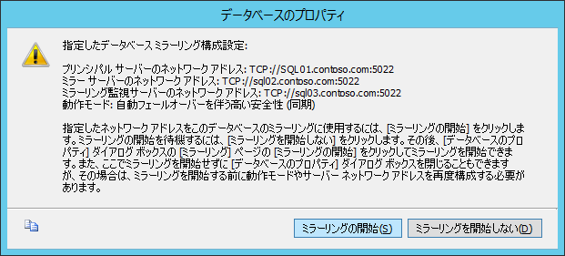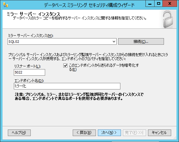 まででデータベースミラーリングを構成する準備はできました。。