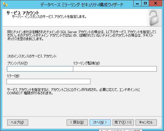 ドメイン環境で データベースミラーリングを構成する ~ 手順 4 ~