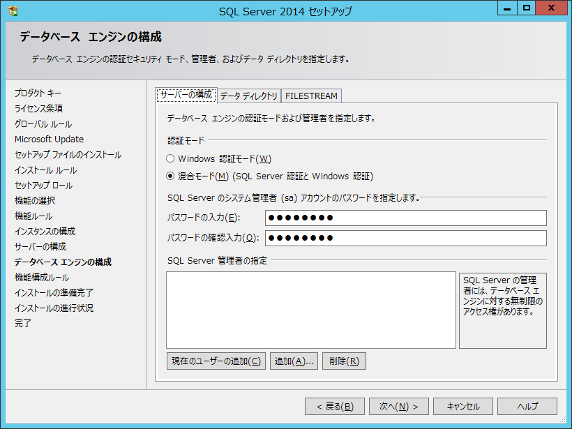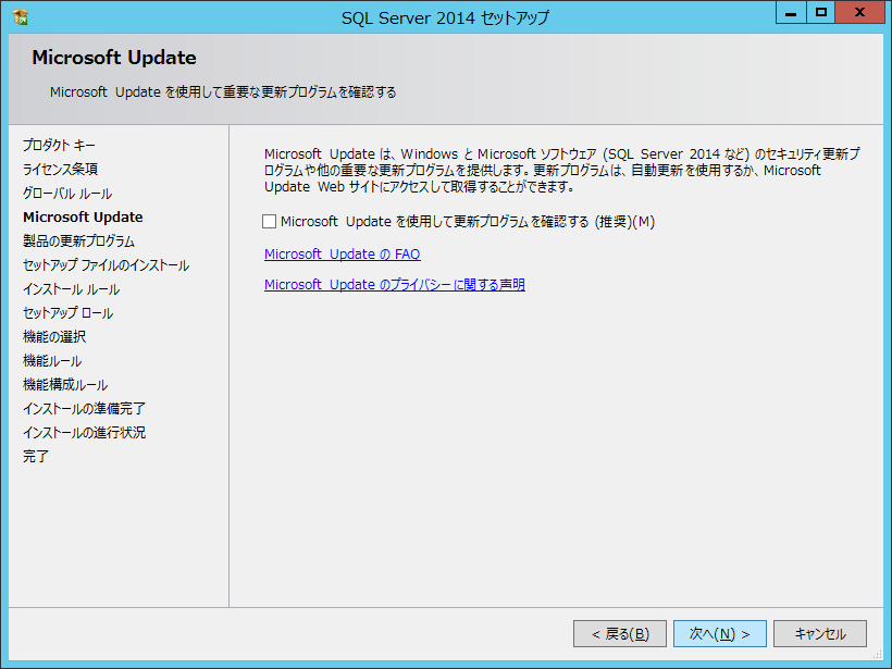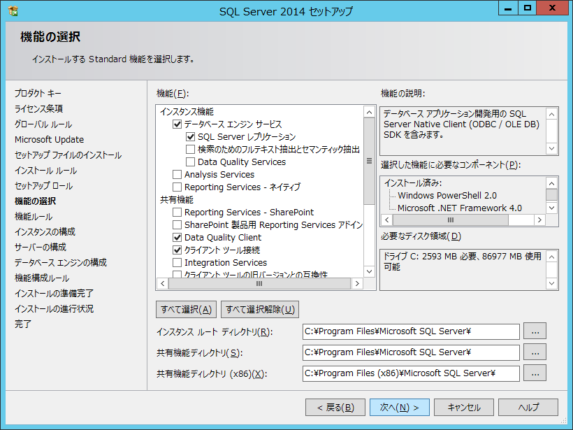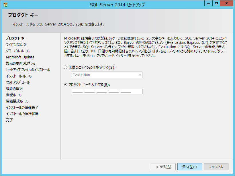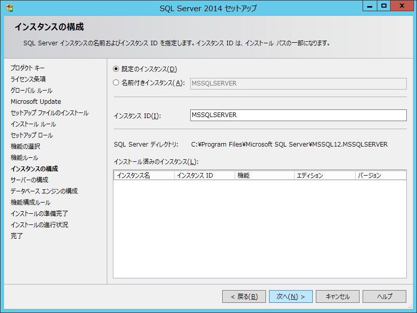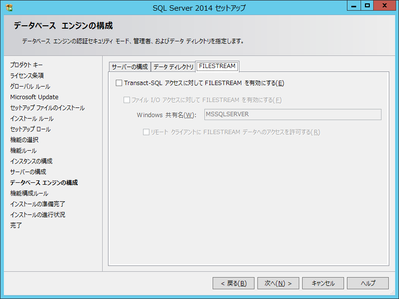 Windows Server 2012 R2 へ SQL Server 2014 Standard Edition をインストールします。