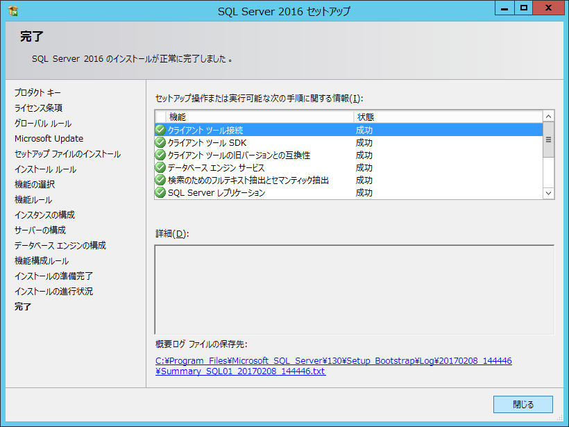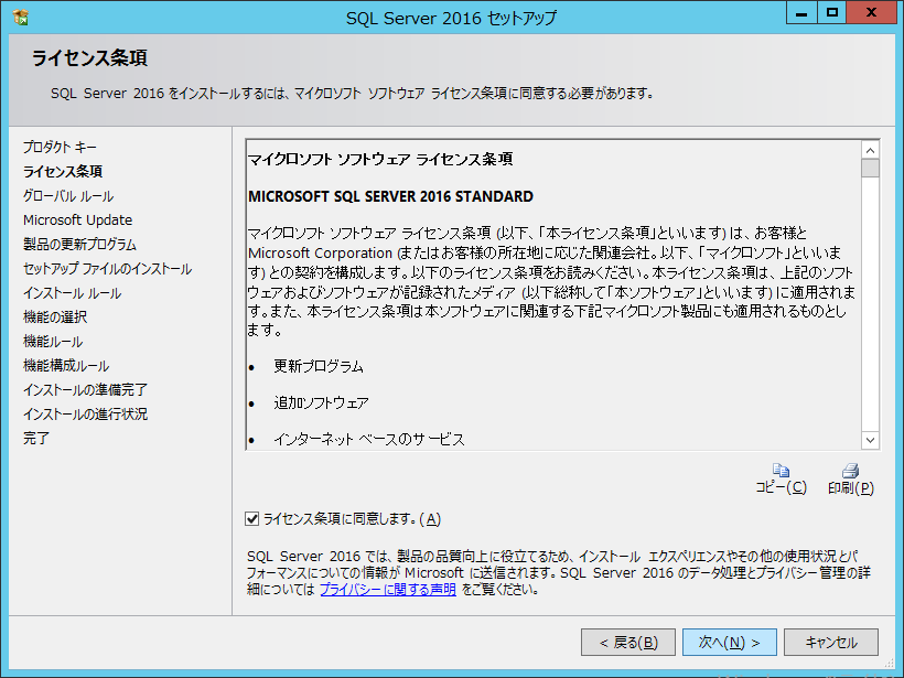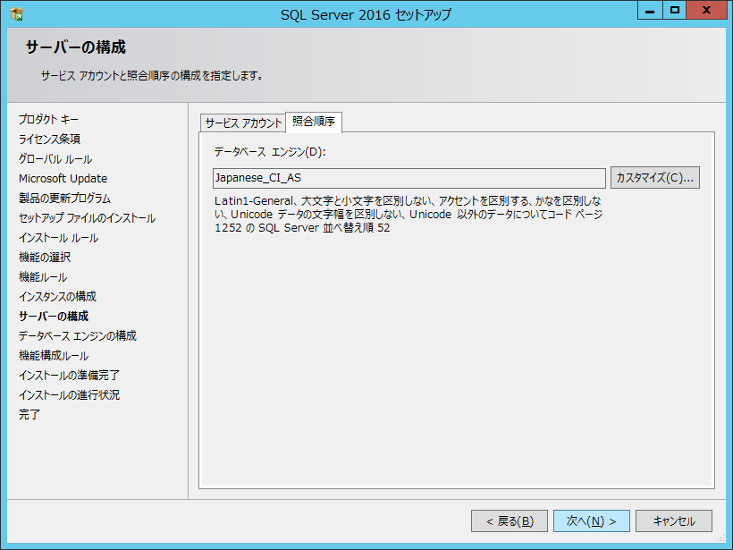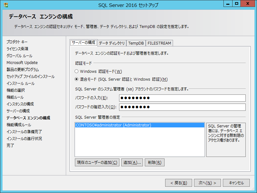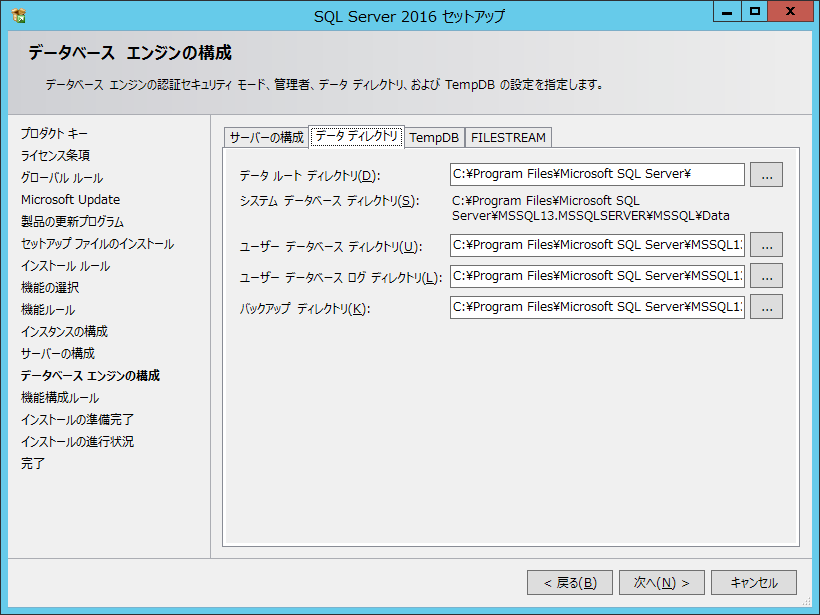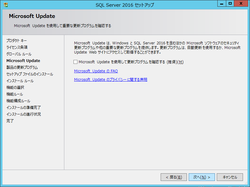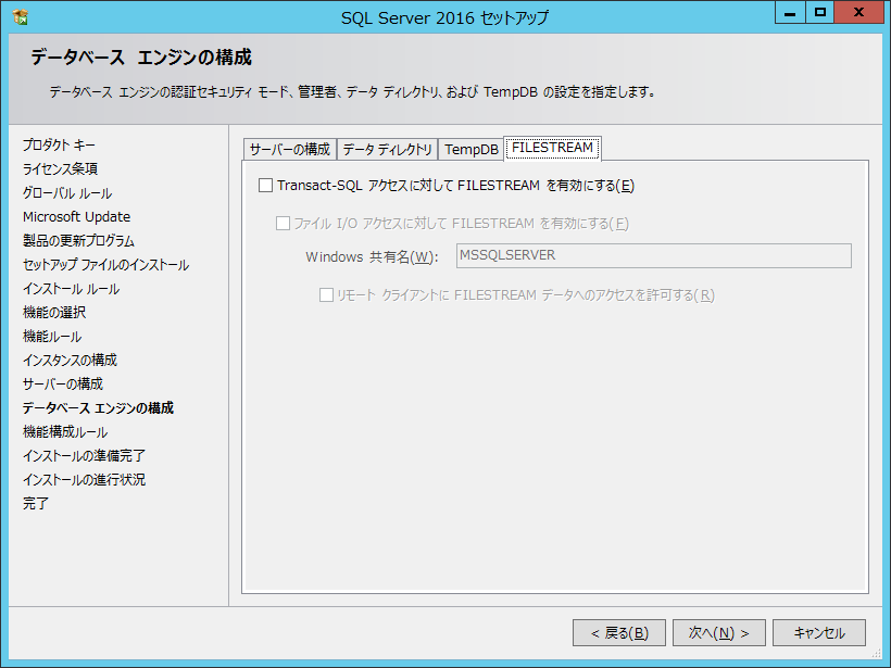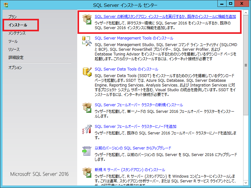 Microsoft SQL Server 2016 インストール