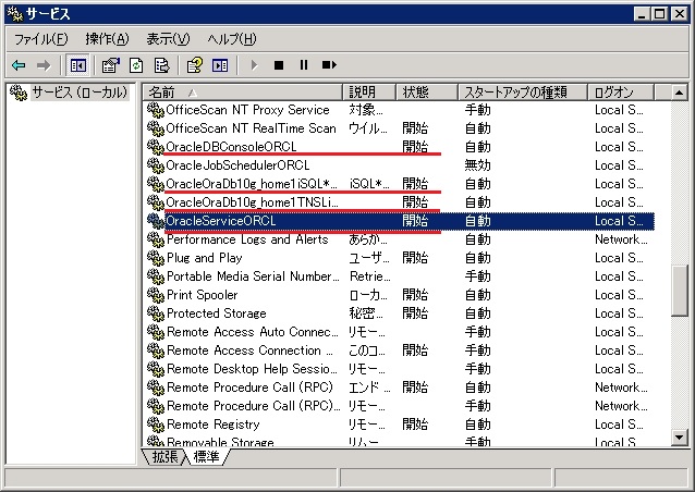 Oracle 10g Database 関係の起動しているサービスをすべて停止します。