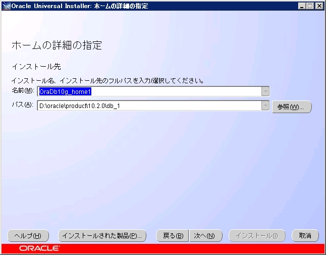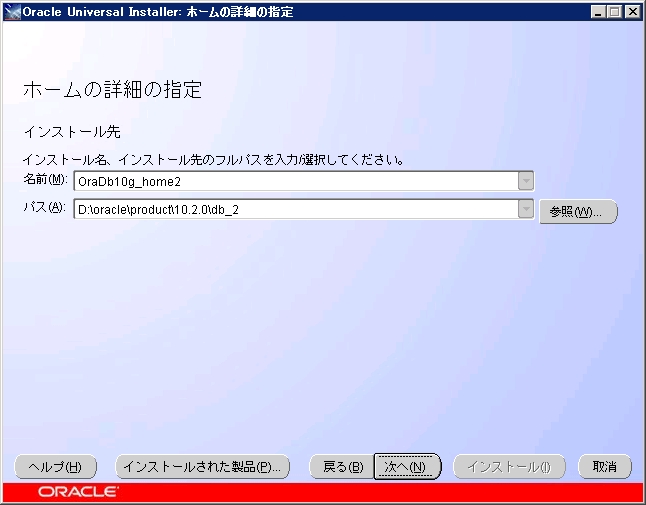 デフォルトでは新しいOrace HOME がセットされており、これでは既存の環境にインストールできません。