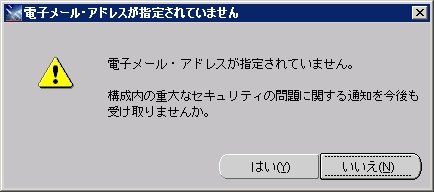 メールアドレスを設定しないと警告メッセージが表示されます。