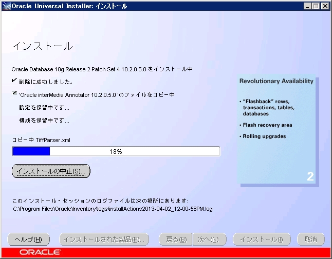 Oracle 10g R2 Patch Set Release 10.2.0.5 のインストールします。