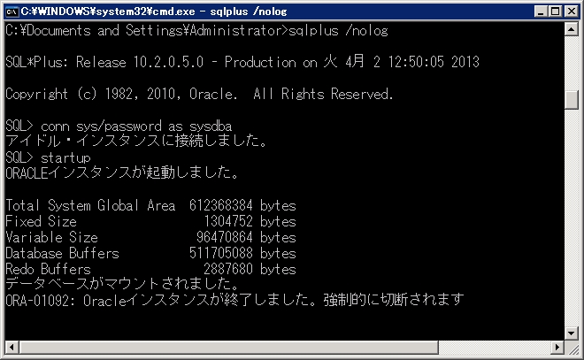 「ORA-01092: Oracleインスタンスが終了しました。強制的に切断されます」