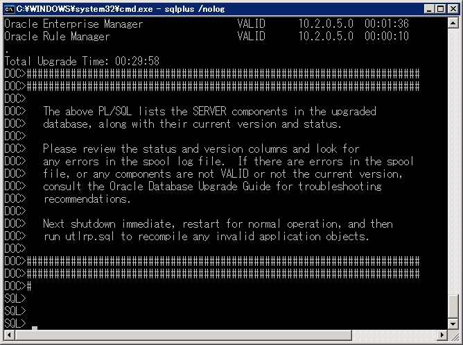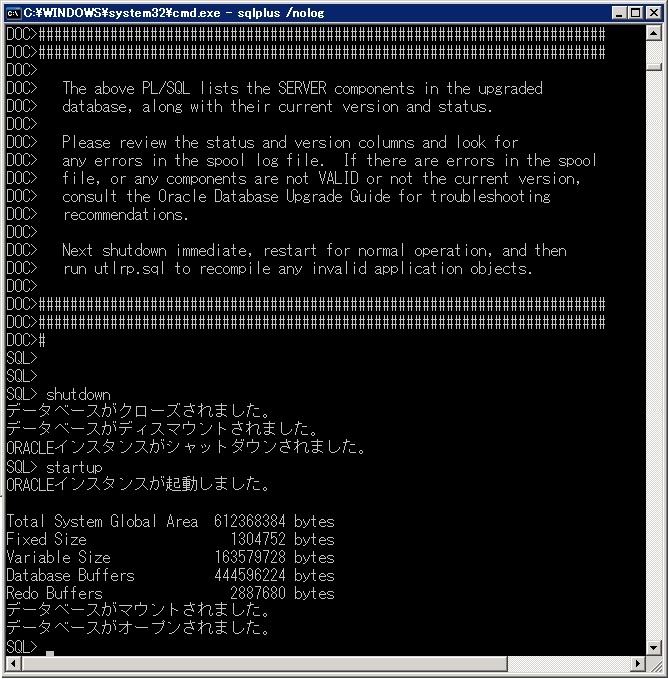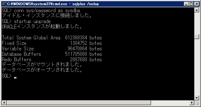 クリックで拡大 - Oracleをアップグレードモードで起動します。