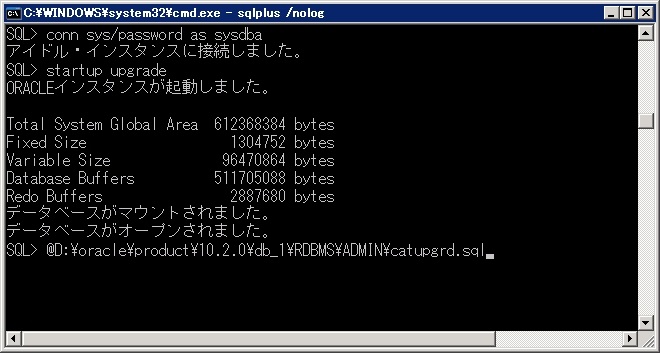 SQL>@D:\oracle\product\10.2.0\db_1\RDBMS\ADMIN\catupgrd.sql