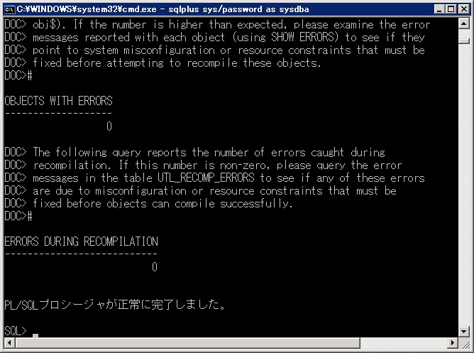 SQL>conn sys/<パスワード> as sysdba