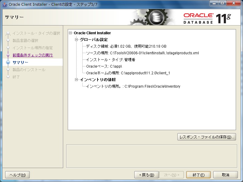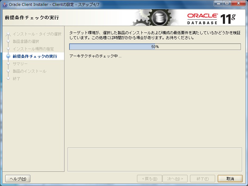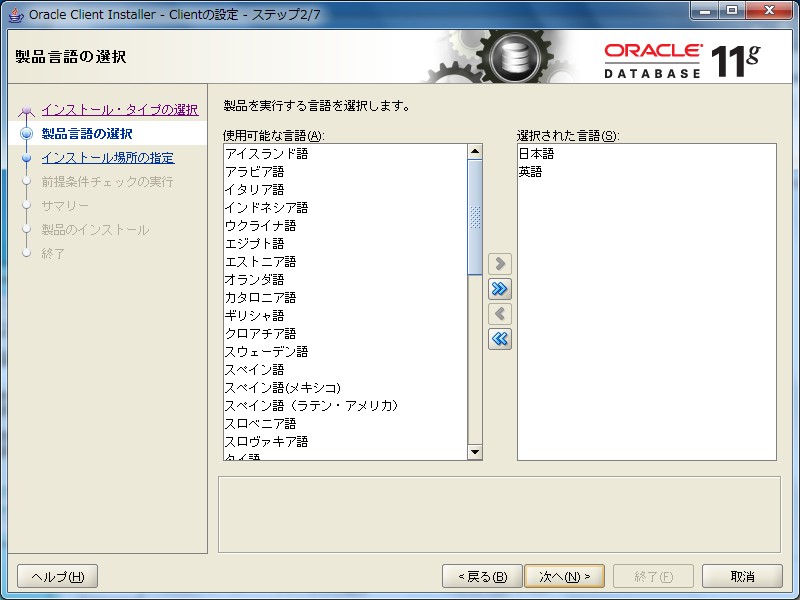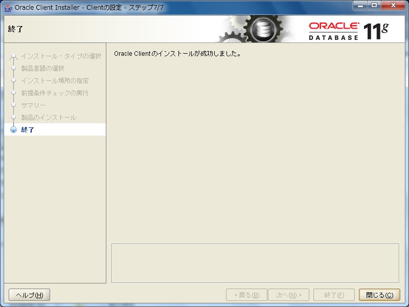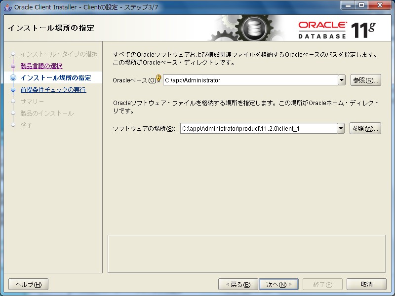 Oracle Database Client 11g R2 インストール (Windows 7)