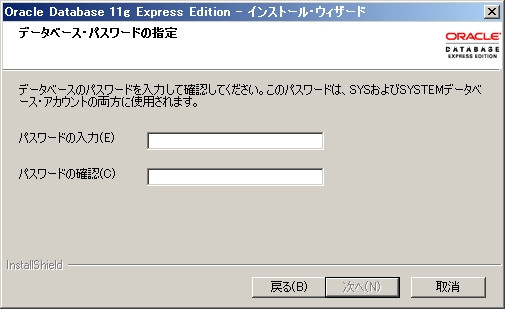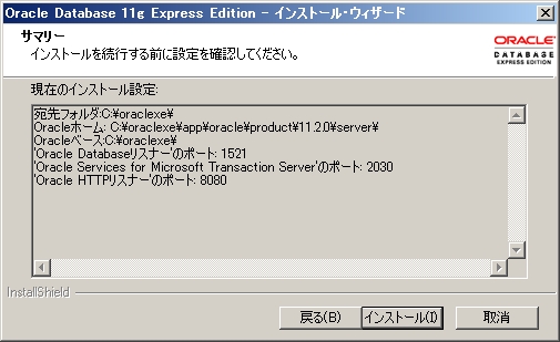 Oracle Database 11g Express Edition インストール