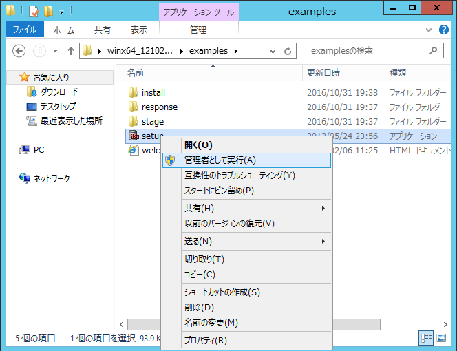 クリックで拡大 - 展開したフォルダの中から「setup」を右クリックし、「管理者として実行」をクリックします。
