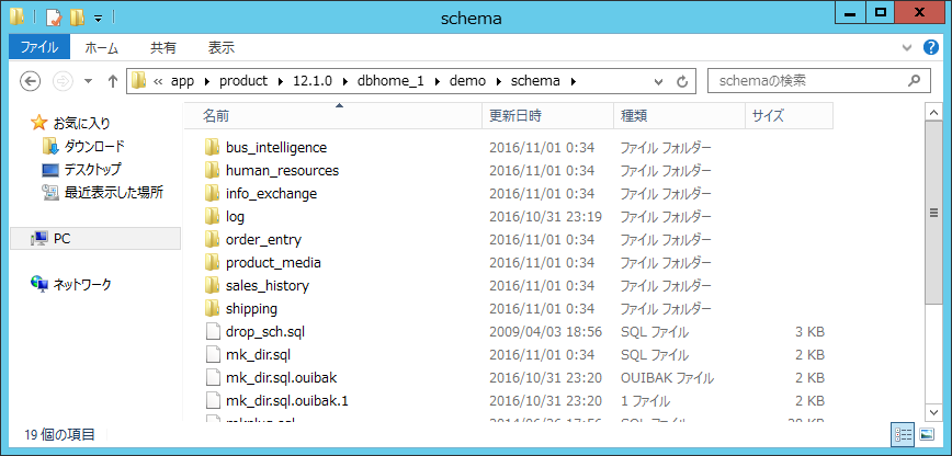 クリックで拡大 - 以下のフォルダにサンプル・スキーマを作成するためのスクリプトが保存されています。