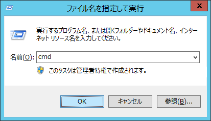 「cmd」と入力して「OK」をクリックします。