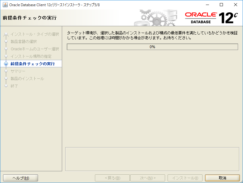 Windows の 64bit 環境へ Oracle 12c Client 32bit 版をインストールする場合にはインストールがエラーで完了できない場合はあります。