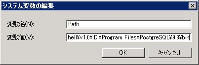 既存の変数値に入っている文字列はそのままに、その末尾にセミコロン「;」で区切って、先ほど確認したPostgreSQLの「bin」フォルダのパスを入力(貼付け)します。