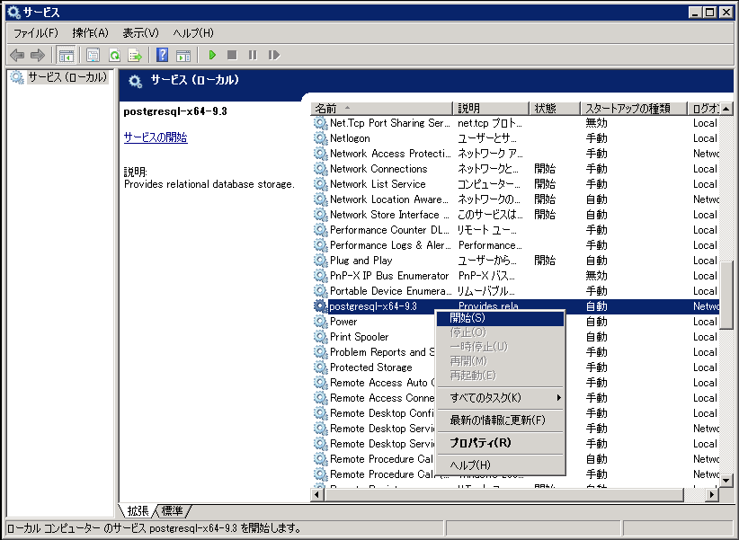 サービスの一覧から「postgresql-x64-9.3」を探します。