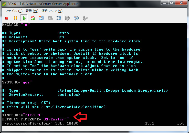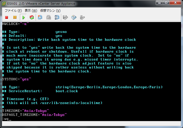 クリックで拡大 - vi でタイムゾーンの設定を変更します。
