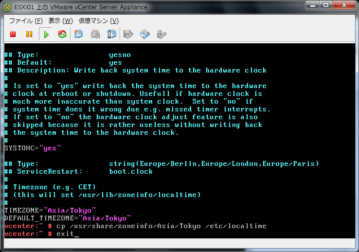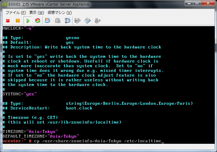 - vCenter Server Appliance タイムゾーンの初期値は「UTC」になっています。