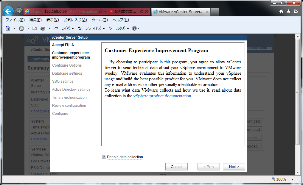 クリックで拡大 - データ収集を有効にするのであれば「Enable data collection」にチェックを入れて「Next」をクリックします。