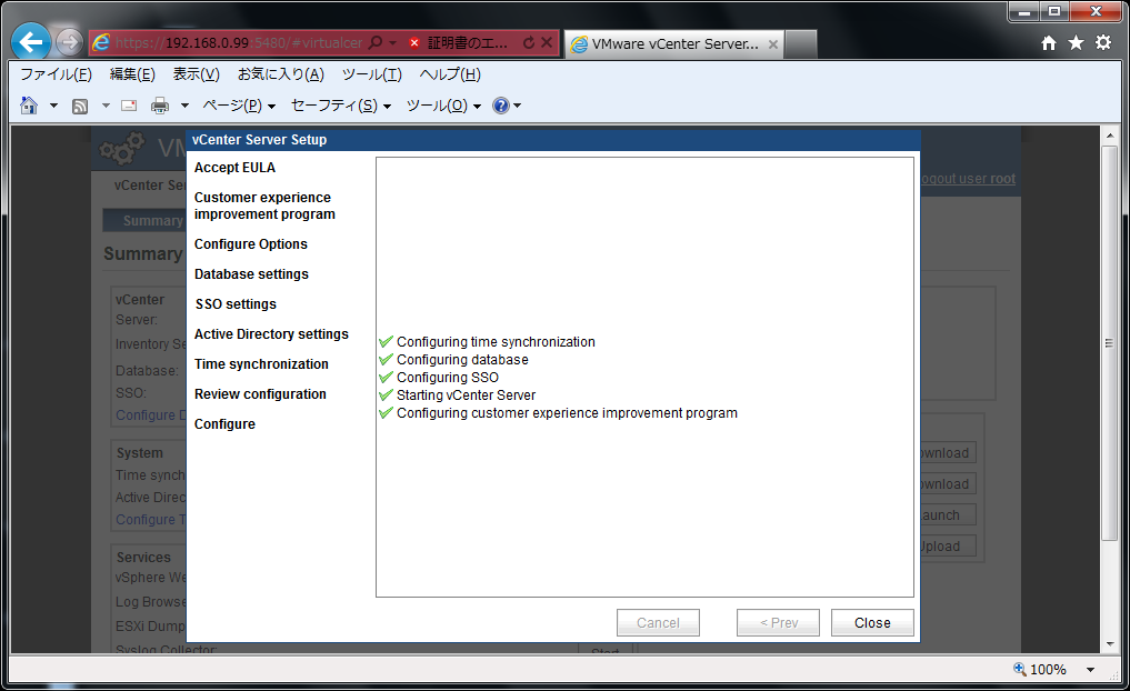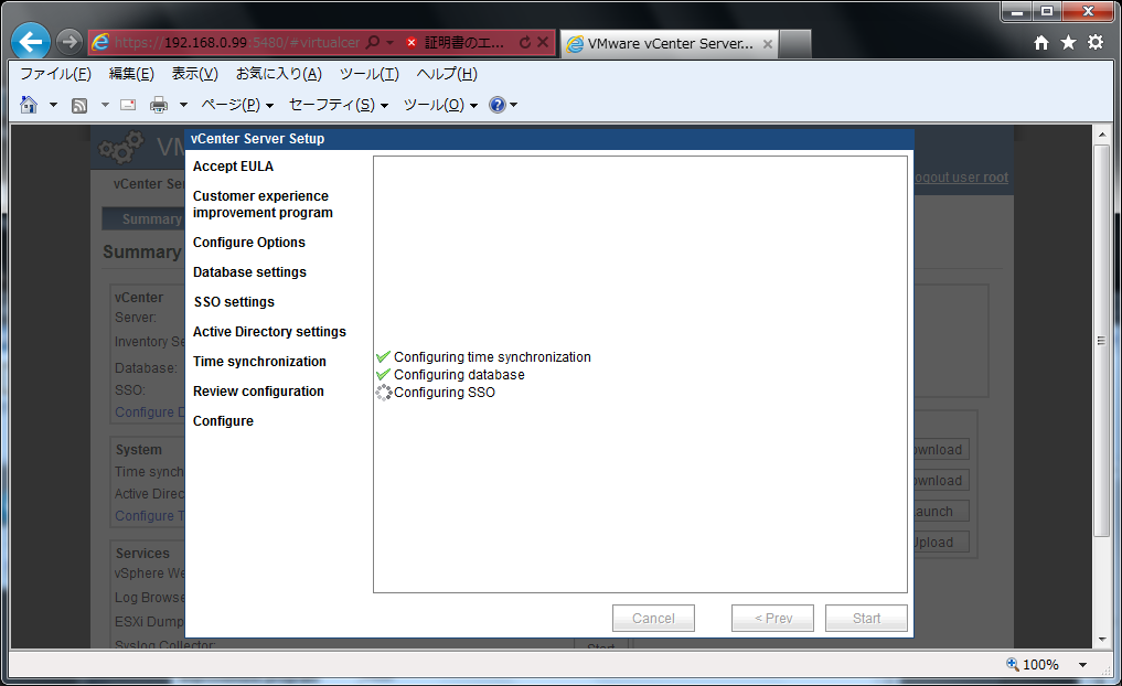 vCenter Server Appliance の初期設定をします。