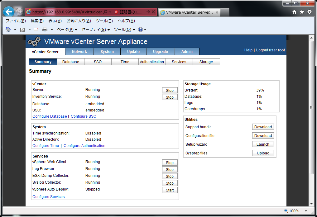 クリックで拡大 - vSenter Server のトップページが表示されれば成功です。