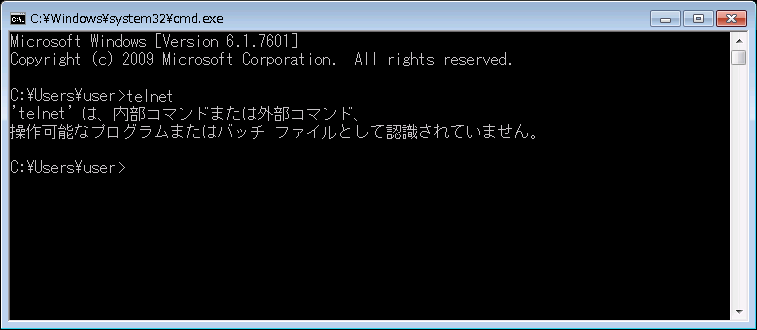 Windows 7 は標準で Telnet クライアント はインストールされていません。