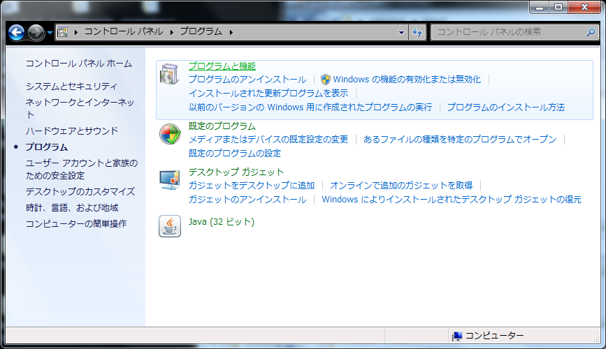 コントロールパネルを開き、「プログラム」をクリックします。