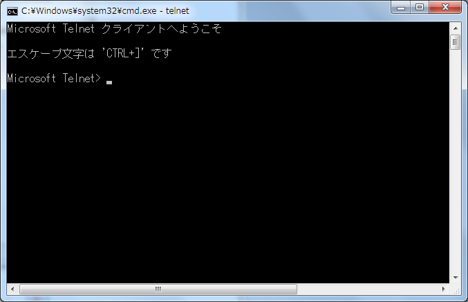 Telnet コマンドを実行できることを確認します。