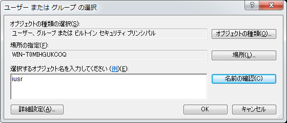 クリックで拡大 - 「iusr」と入力し、「名前の確認」ボタンをクリックします。