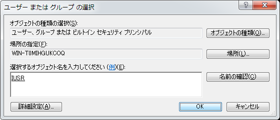 クリックで拡大 - 「IUSR」が一覧に追加されたことを確認して「OK」をクリックします。