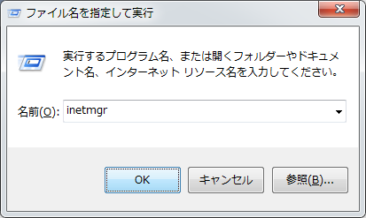 「inetmgr」と入力して「OK」をクリックします。