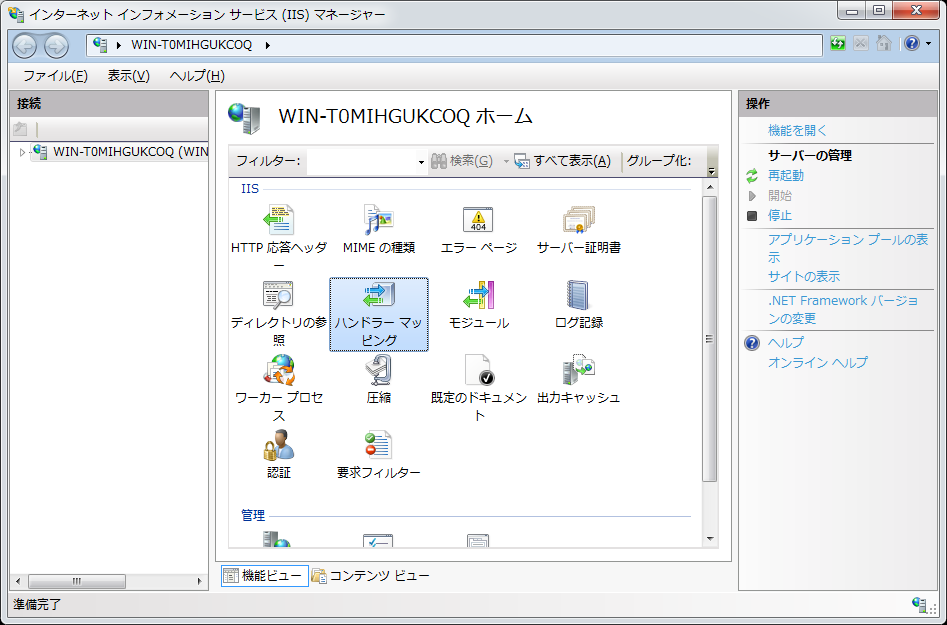 クリックで拡大 - インターネット インフォメーション サービス(IIS)マネージャーが起動します。