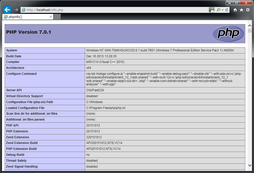 Windows 7 の IIS で PHP を動作させる手順です。