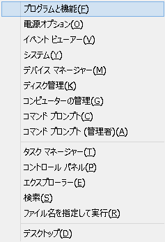 ショートカットの一覧が表示されるので一番上の「プログラムと機能」をクリックします。