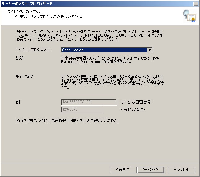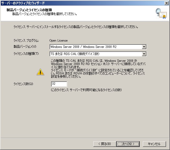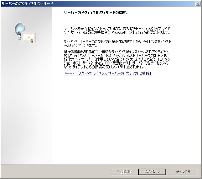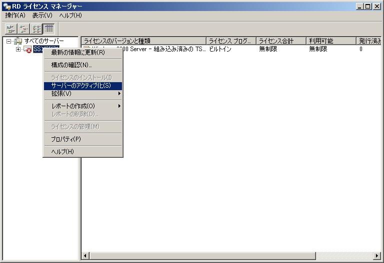 リモートデスクトップ ライセンスサーバーのアクティブ化