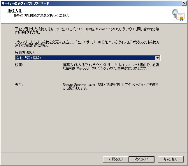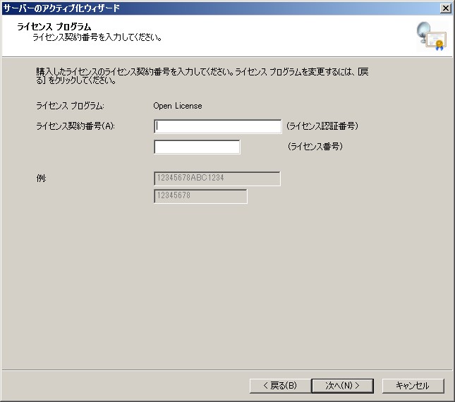 クリックで拡大 - サーバーのアクティブ化ウィザードが起動します。