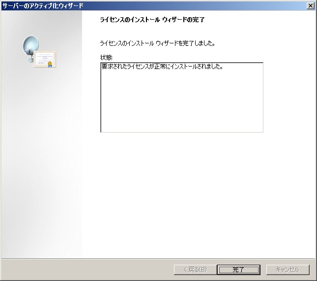 クリックで拡大 - 【サーバーのアクティブ化ウィザードの完了】