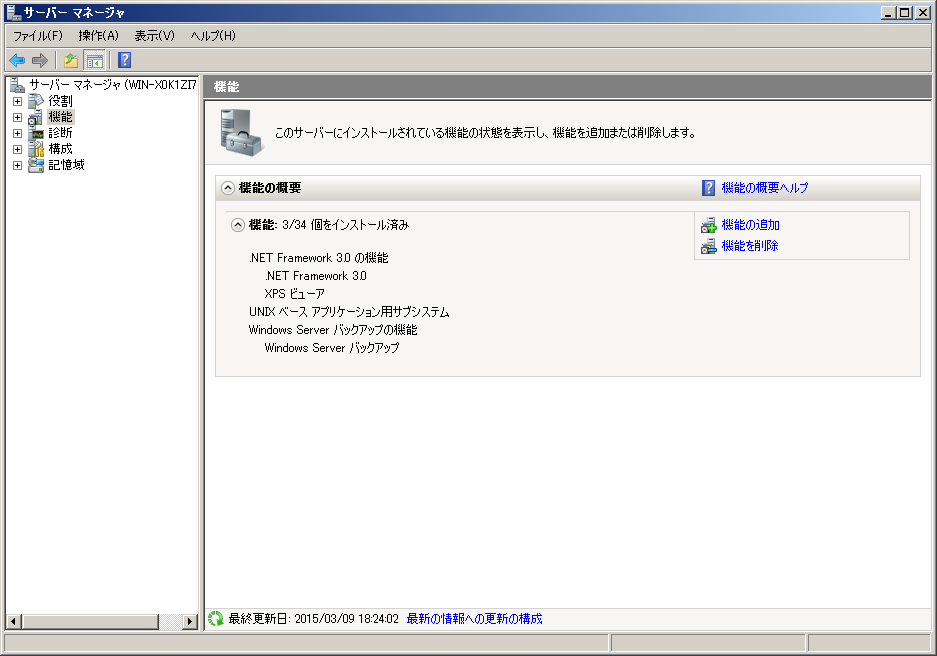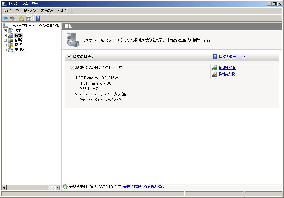 左ペインでツリーから「機能」を選択し、「機能の追加」リンクをクリックします。