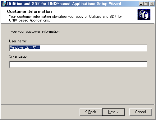 「ユーザー名」、「会社・組織名」を入力して「Next」をクリックします。