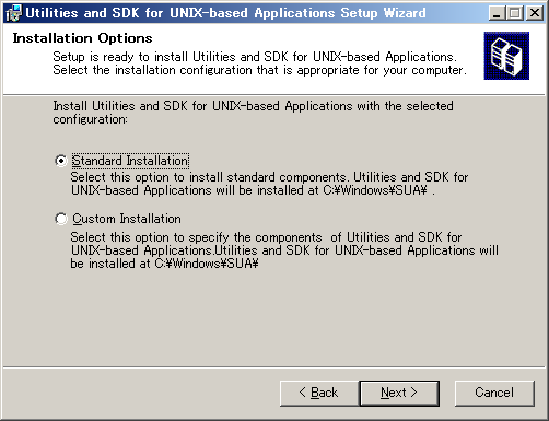 「Standard Installation」を選択して「Next」をクリックします。