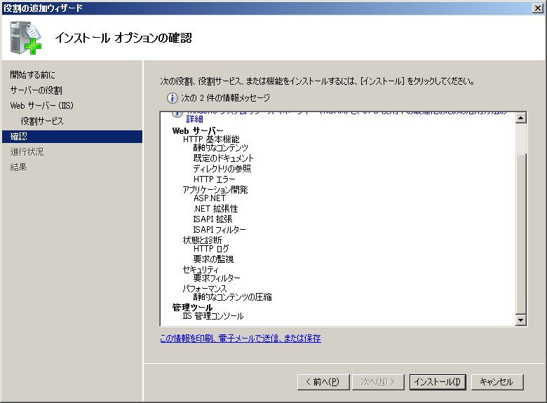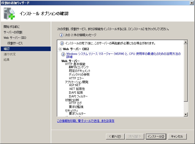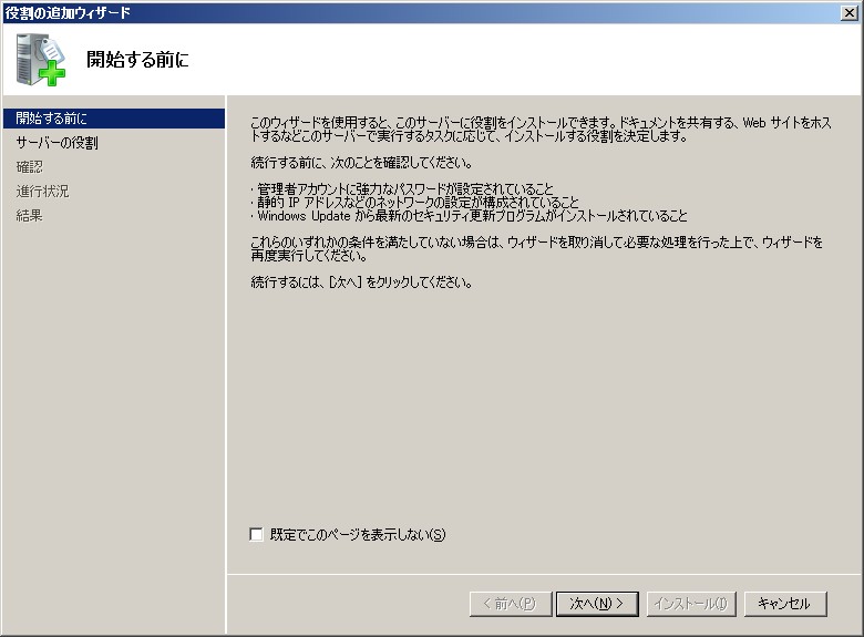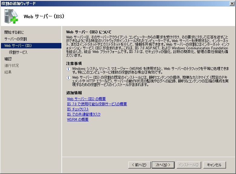 Windows Server 2008 IIS 7.0 インストール