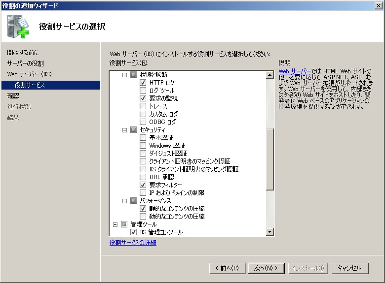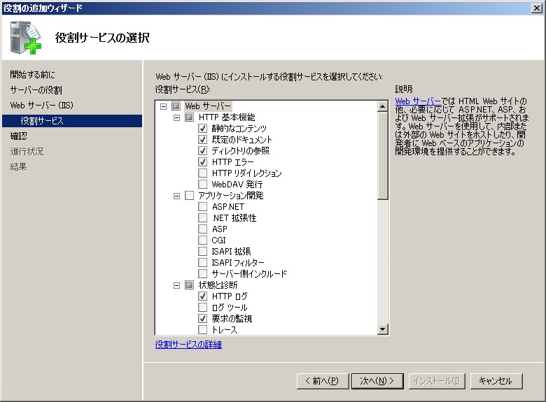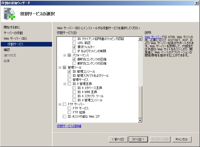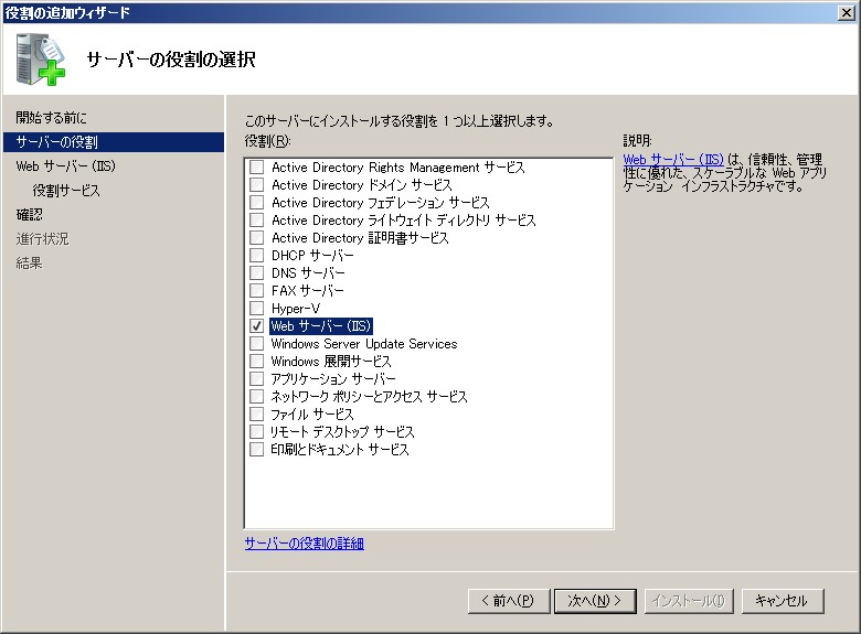 クリックで拡大 - 役割サービスの選択