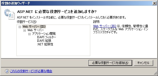 「必要な役割サービスを追加」をクリックして追加します。