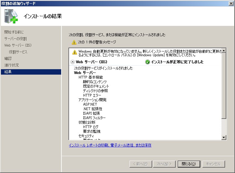 標準の機能とASP.NETが動作する程度で構成した手順です。